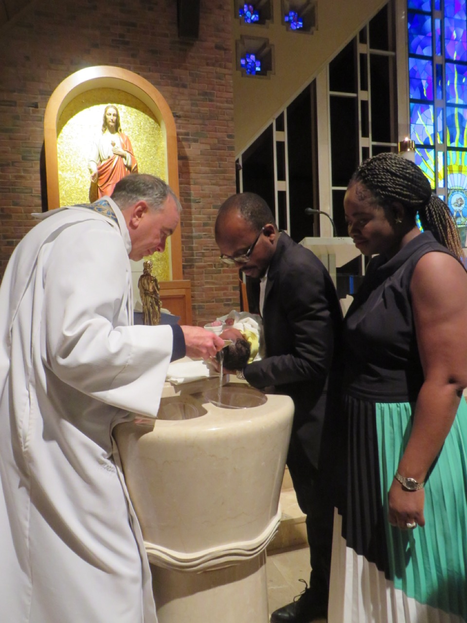 Celebrate the Baptism. In our parish Baptisms are held on the Saturdays 2:00pm. Please contact Lourdes Alvarez at the Parish Office to schedule.