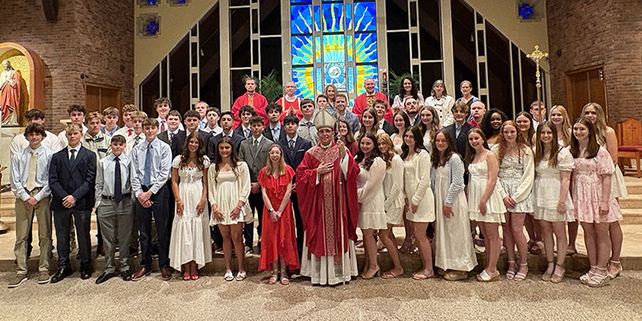 Confirmation Sacrament Preparation is for students in Grades Nine and Ten attending public, private and parochial schools. The program typically consists of classroom instruction and discussion, service to the parish and community, field trip, retreat attendance, and written assignment. Class time is Sunday mornings in-between the Parish Masses in the school.