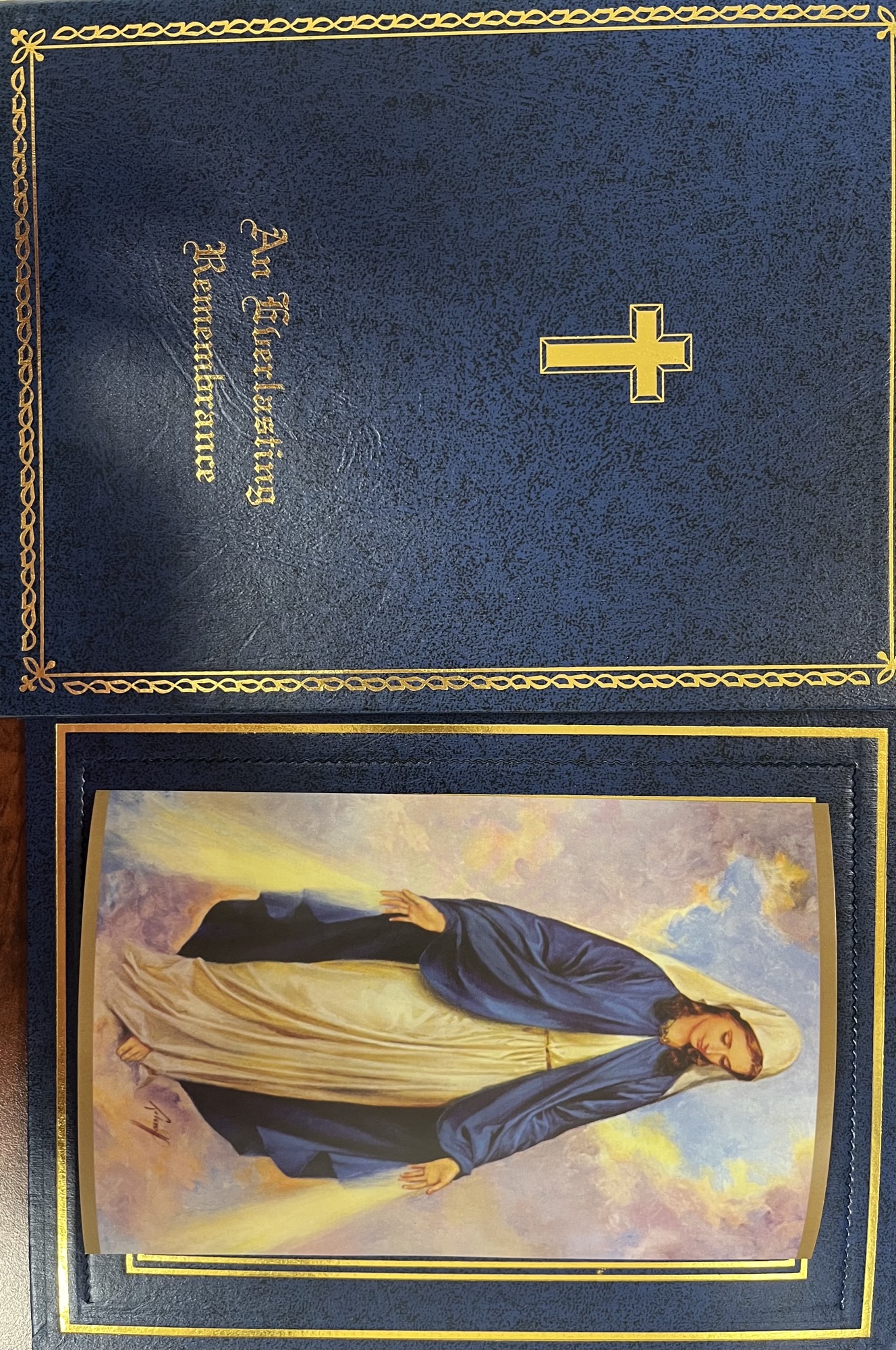 The Memorial Guild is a hard cover Mass Card given in memory of the deceased. The deceased loved one will be remembered monthly with this memorial forever. The donation is $25.