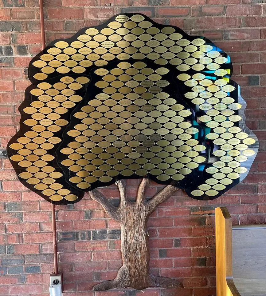 The Tree of Life is located in the main foyer at the main entrance of Our Lady's Church. One tree on each side. The donation of a leaf in memory of a loved one or a special intention. The cost of each leaf is $1,000.